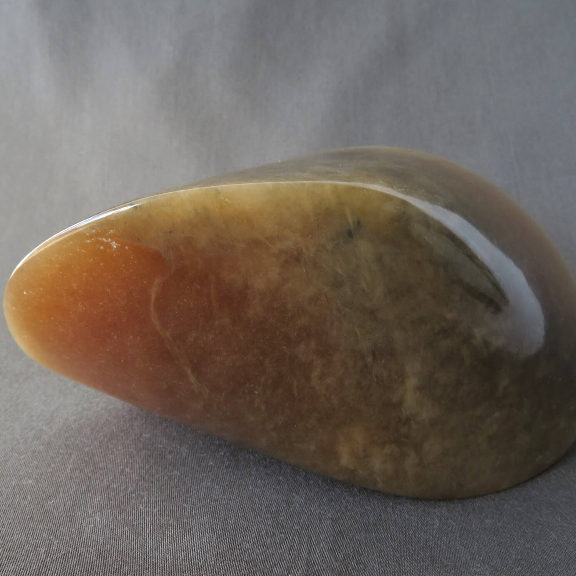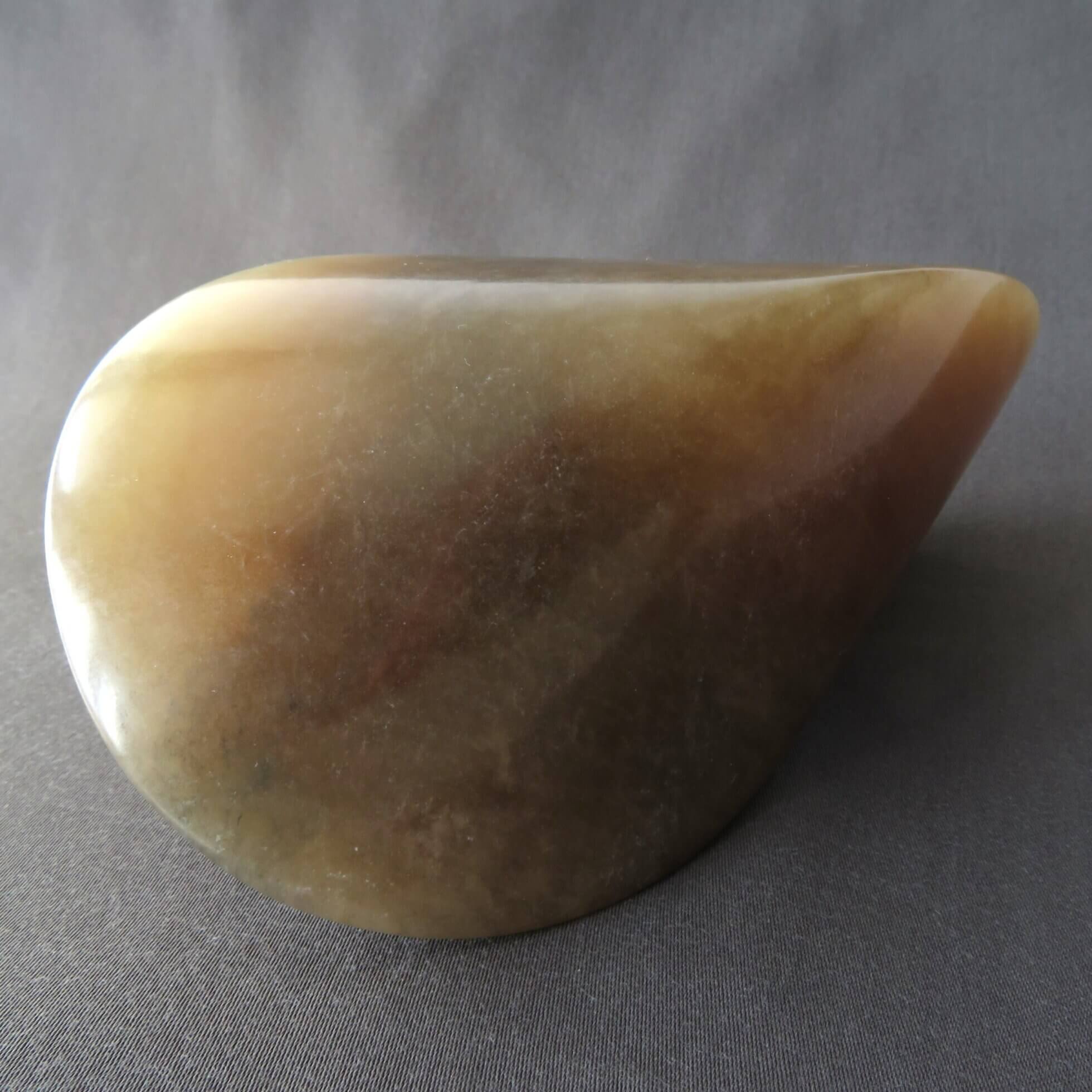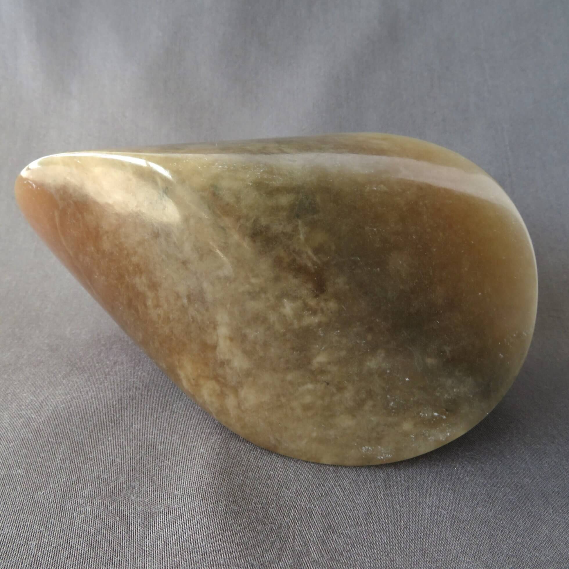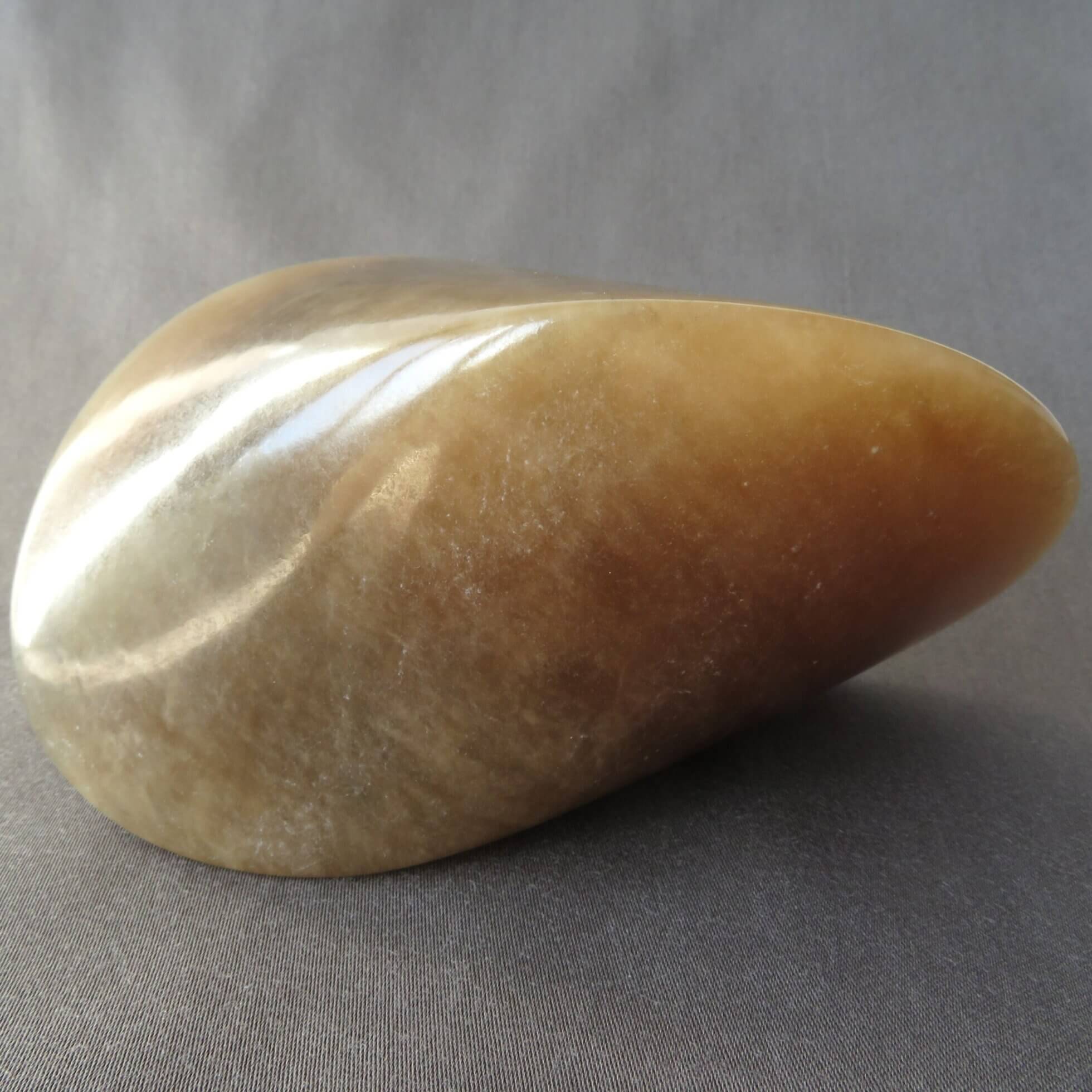 De bruine oloïde is vervaardigd uit bruin albast en is daarmee gedeeltelijk licht doorlatend. De oloïde is gepolijst en beschermt met een crème wat de steen een prachtige glans geeft.